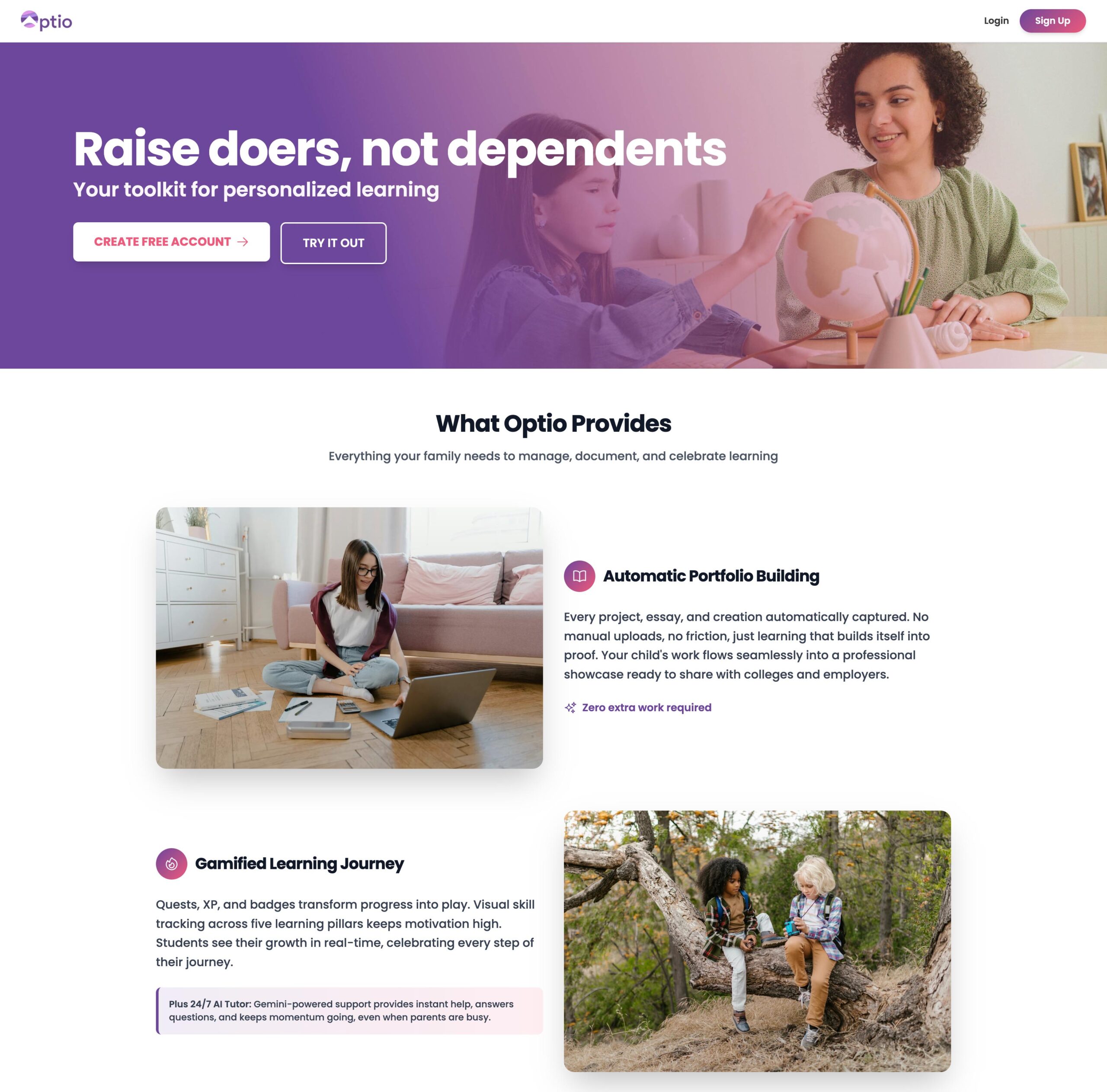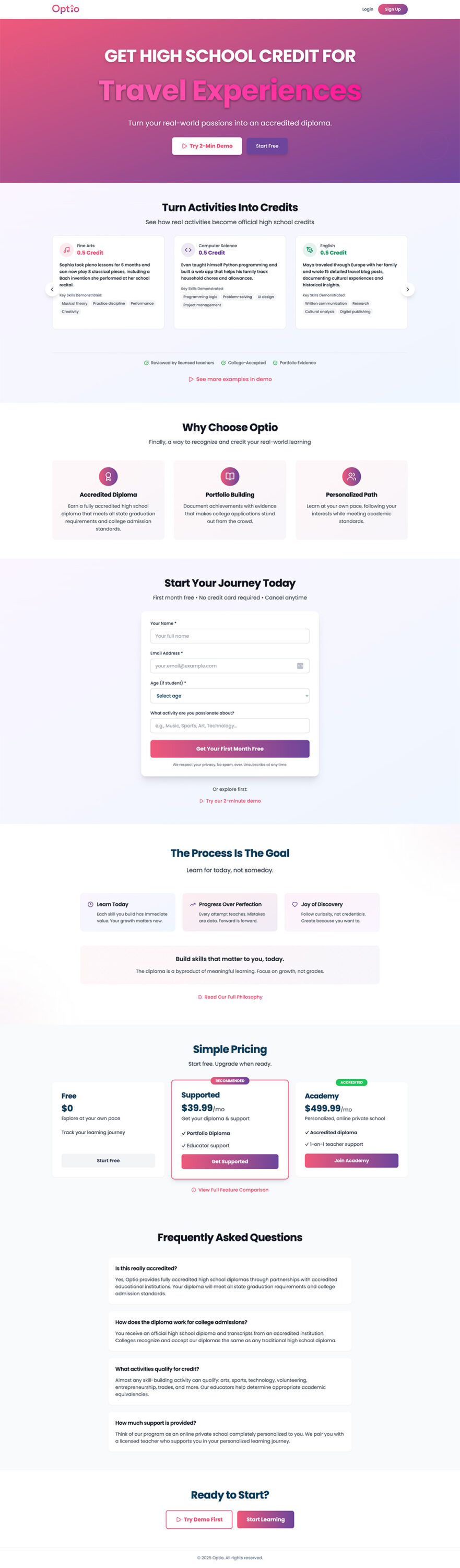 Optio is a child company of Zion Forge. After joining Zion Forge, they requested full branding, a website, and an app design rework. After reviewing their budget and materials, I decided to focus on a simple web design rework that would scale easily to mobile without much design effort and help build the beginning of an engaging, "Duolingo-esq" brand.